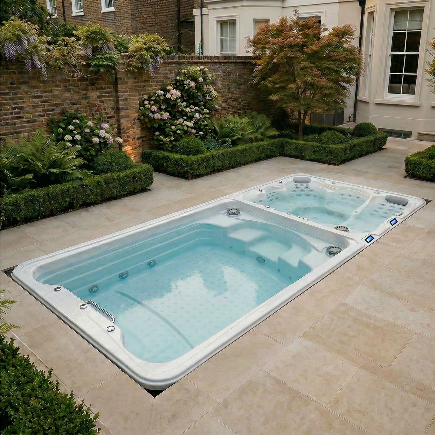 WaterFit 2 Swim Spa mit 5,8m Länge: Erleben Sie Schwimmen, Aqua-Fitness und Erholung in zwei Zonen.